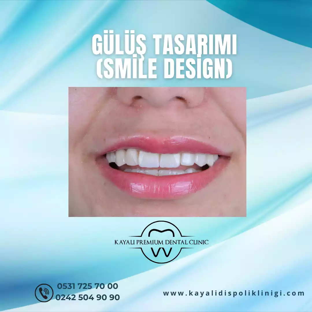 Gülüş tasarımı, bireylerin yüz hatlarına ve diş yapılarına uygun olarak kişiselleştirilmiş estetik gülüşlerinin oluşturulmasını amaçlar. Beklentilerinize uygun gülüş tasarımı uygulaması Kayalı Premium Dental Clinic’te sizleri bekliyor.